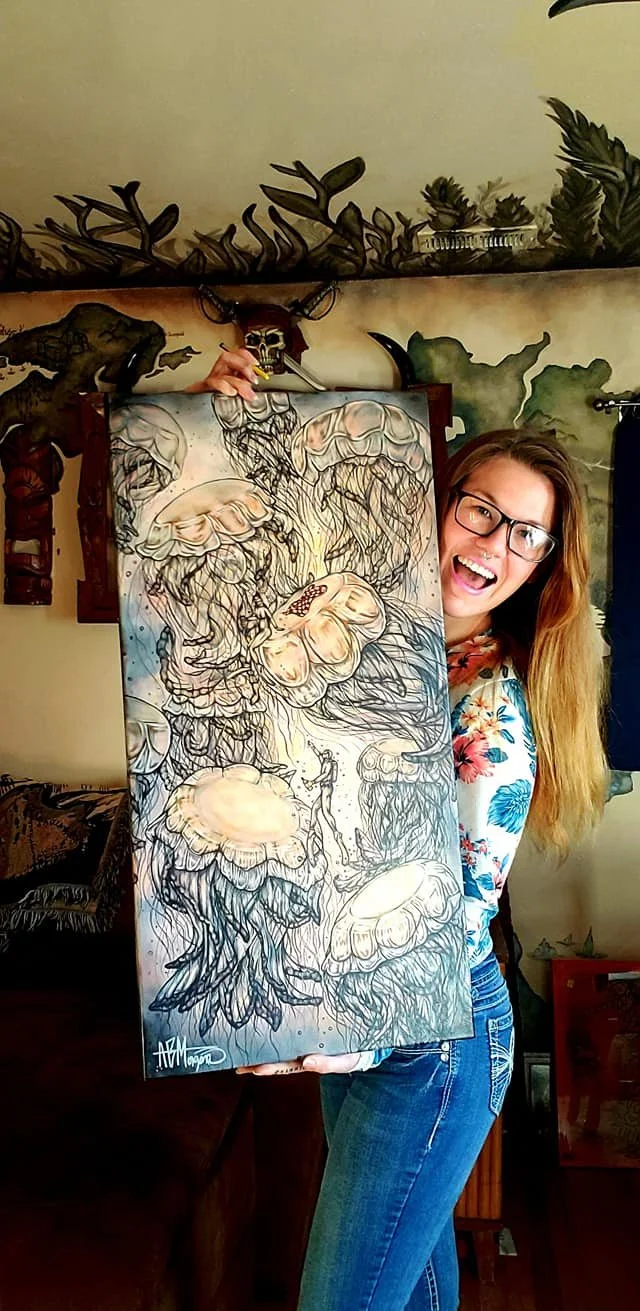 As an artist, I work to recreate what I see and experience beneath the surface of the waves, the real and the imagined. It's important to me that I capture the tone of the different locations which inspire each piece; the pacific northwest, my beautiful home, has a different feel and look than my more tropical pieces, inspired by my explorations in Hawaii. The sea has always felt inviting to me; It is myhome away from home. So whichever pieces call to my viewers and collectors, I hope they bring feelings of home, adventure, or both.